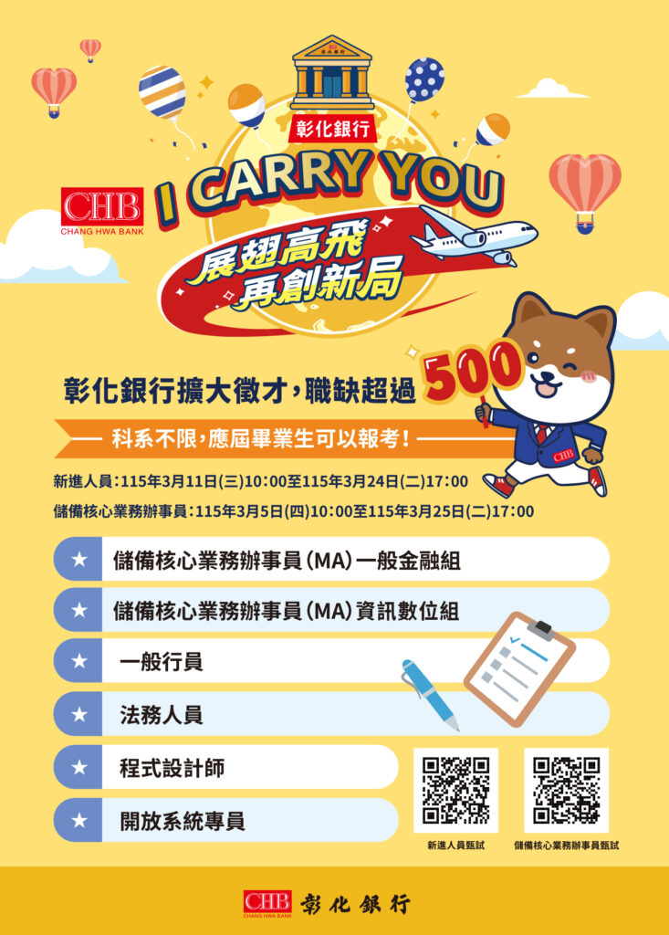 彰化銀行擴大徵才 新增獎勵金強化員工福祉 百萬年薪圓夢路幸福職場 3/11開放報名