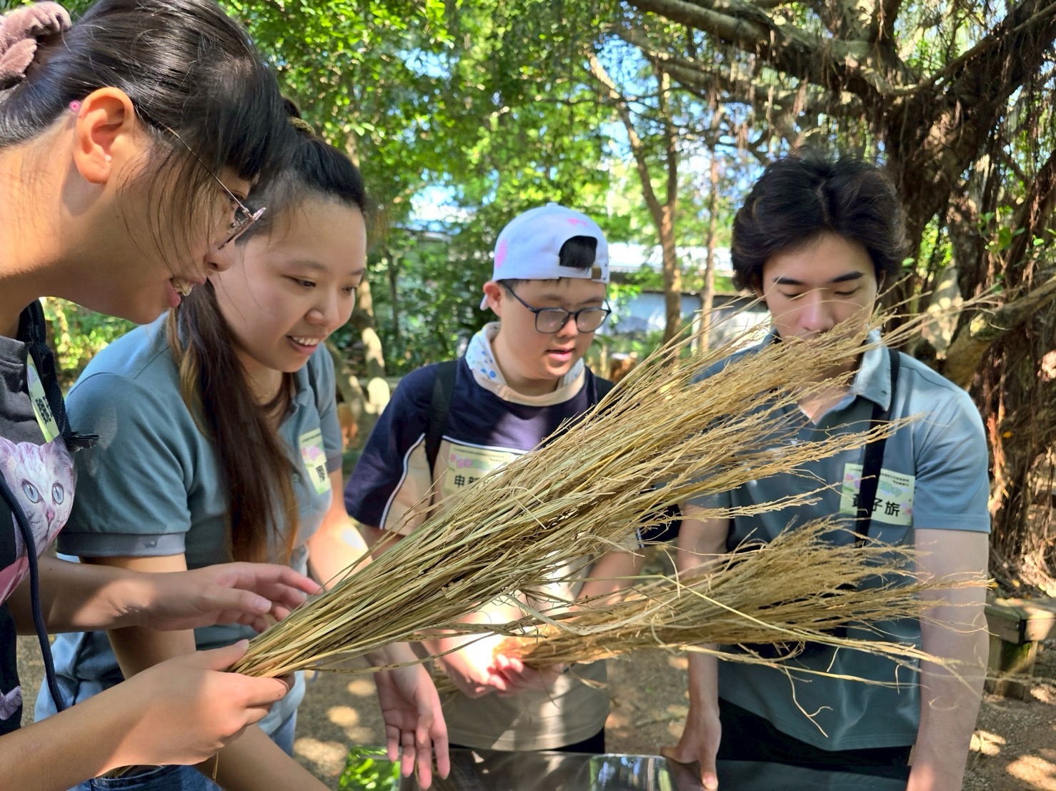 活動當天,三商美福志工熱情陪伴視障學員,細心引導他們完成搥背棒的製作,並一同參與搭乘「大王蓮花」的特色體驗。透過傾聽自然的聲音與感受平衡的挑戰,讓學員們以另一種方式「看見」世界的精彩。