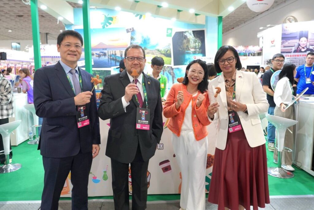 「中美洲館」開幕儀式於7日上午熱鬧舉行,賴清德總統親臨現場,外交部次長吳志中、貝里斯大使梅凱瑟(Katherine Vanessa Meighan)、瓜地馬拉大使艾特維(Luis Raúl Estévez López)、交通部與台灣觀光協會貴賓,以及中美洲經貿辦事處主任徐韶慧皆出席共襄盛舉,展現台灣與中美洲友邦在觀光與文化交流上的深厚友誼與堅實合作。