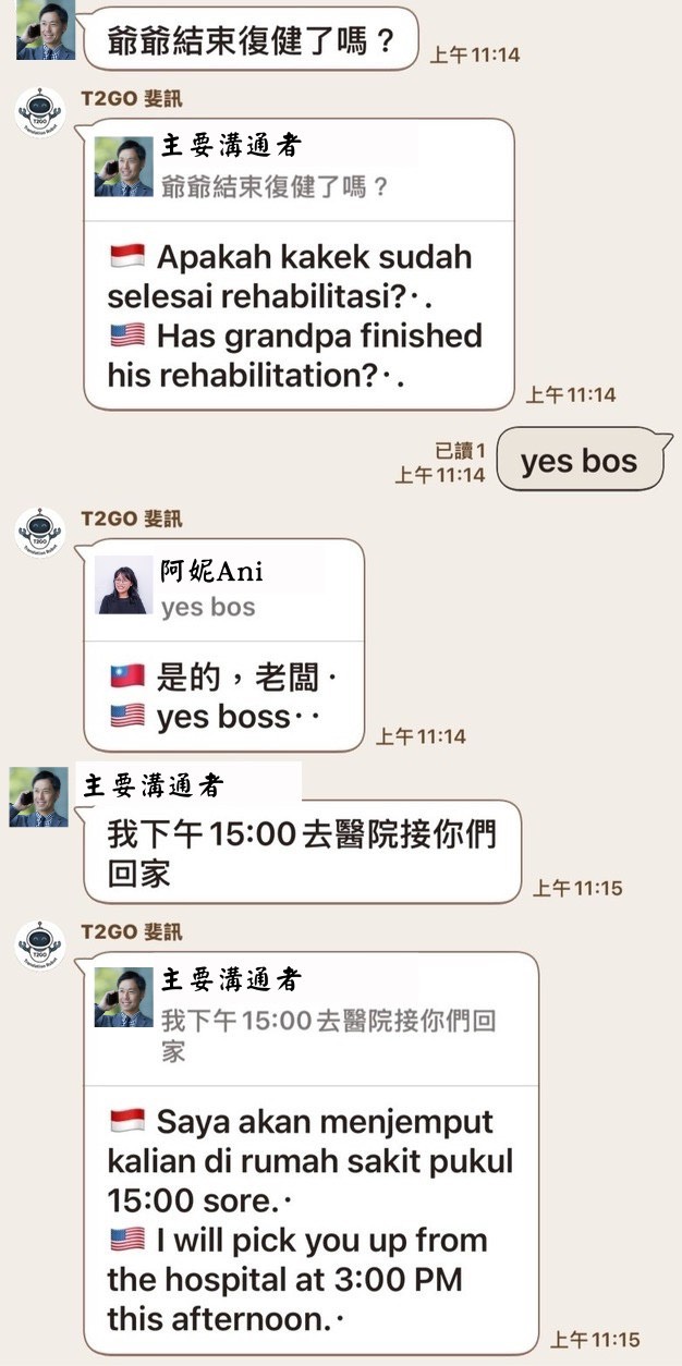 在這些情境下,近年愈來愈多家庭與企業開始使用 LINE 翻譯機器人作為日常協助工具,其便利性、零學習門檻以及跨裝置可用的特性,使其成為最貼近實際需求的溝通輔助方式。其中,由台灣工程師團隊開發的 「T2GO 斐訊 LINE 翻譯機器人」,因支援 100 多種語言與即時翻譯能力,在照護家庭與工廠場域中逐漸受到關注。