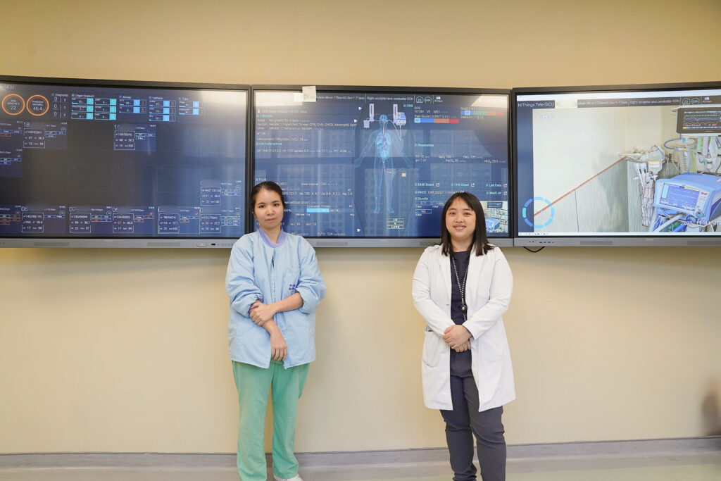 院長陳自諒表示,中國醫藥大學新竹附設醫院加護病房正式導入體系開發的 HiThings Tele-ICU 智慧戰情系統,打造「戰情室智慧加護病房」,以AI與物聯網科技,全面提升重症照護效率與安全。讓醫療團隊縱觀全局、即時掌握病房動態。系統設有三大主介面,可即時呈現ICU整體床位使用率、患者病情嚴重度、醫護工作負荷等資訊,並透過地圖化呈現床位與感染分佈狀況,協助團隊提早偵測潛在院內感染群聚、調度人力與資源,整合院內數據庫,智能預測患者死亡率、中風、敗血症、心肌梗塞是風險,達到個人化精準醫療。