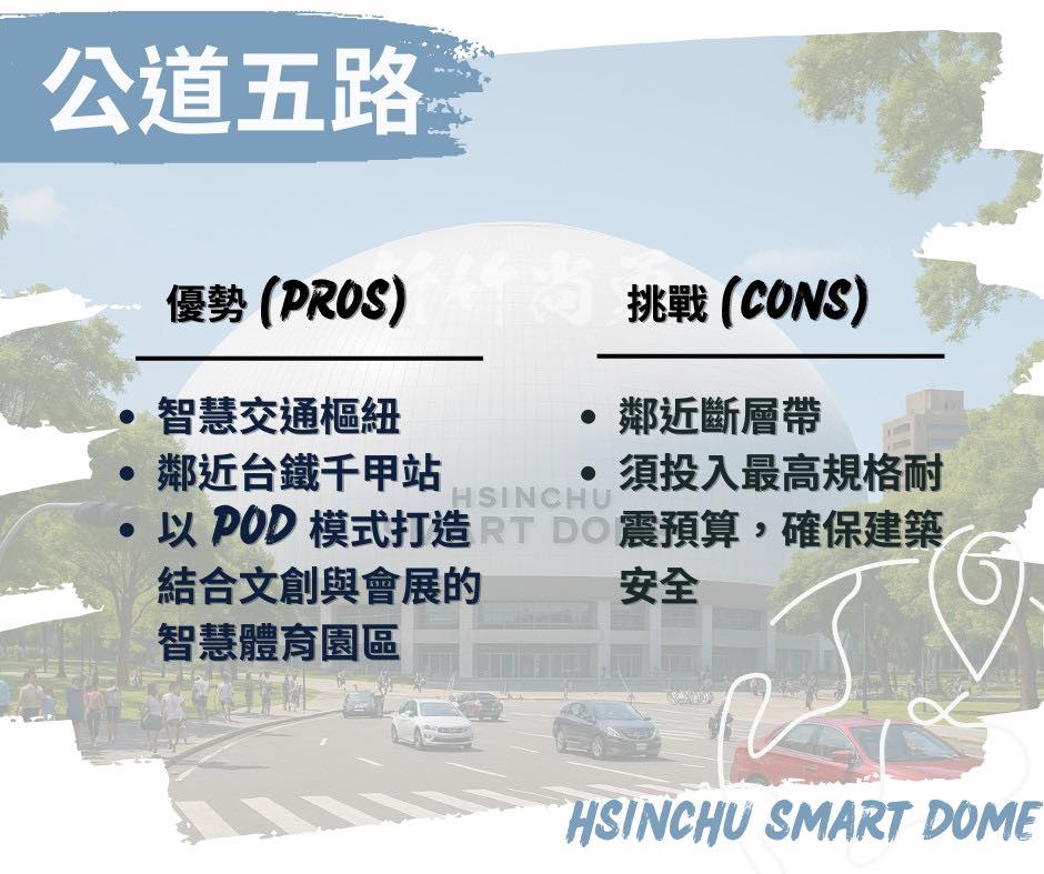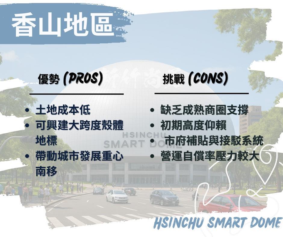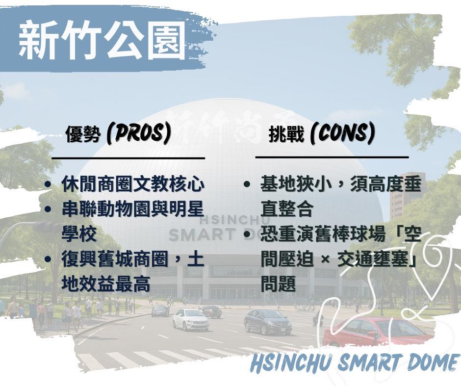 何志勇說明,這一次提出興建「新竹巨蛋 Smart Dome」計畫,絕不重蹈棒球場覆轍!並針對三個潛在地點,進行評估與分析,以實際行動是告訴市民:「我們談的是願景,不是政治口水!」