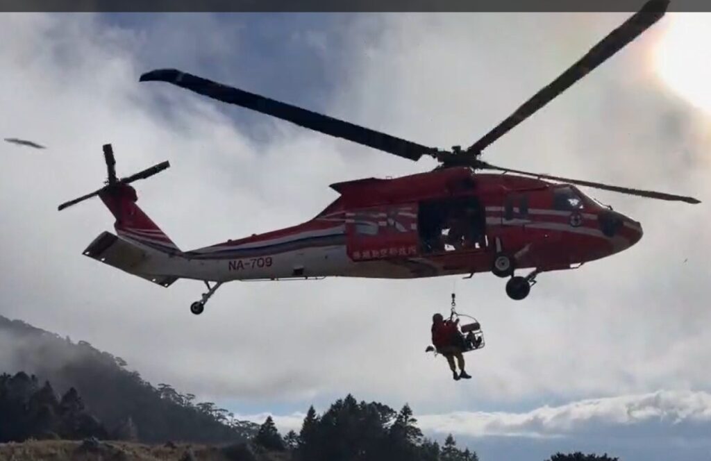由於林姓男子四肢有擦傷身體虛弱意識清醒,搜救人員架設繩索協助患者後撤至新達山屋休息過夜,1/8(四) 8時30分申請空勤直升機將患者吊掛並載往竹東河濱公園,9時24分由竹東91救護車後送至新竹北榮醫院。