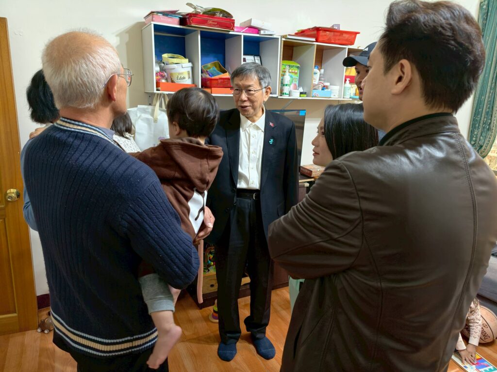台灣民眾黨國家治理學院院長柯文哲今(6)日與新竹黨部主委邱臣遠、竹北市民代表游雅婷深入新竹縣竹北市基層,展開一系列「社會共融、在地關懷」行程。一行人首站前往探視地方獨居老人,親手送上民生物資;隨後轉往拜訪深耕多年的「中繼家庭」機構,呼籲大眾共同建構更穩固的社會安全網,接住每一位處於困境中的民眾。