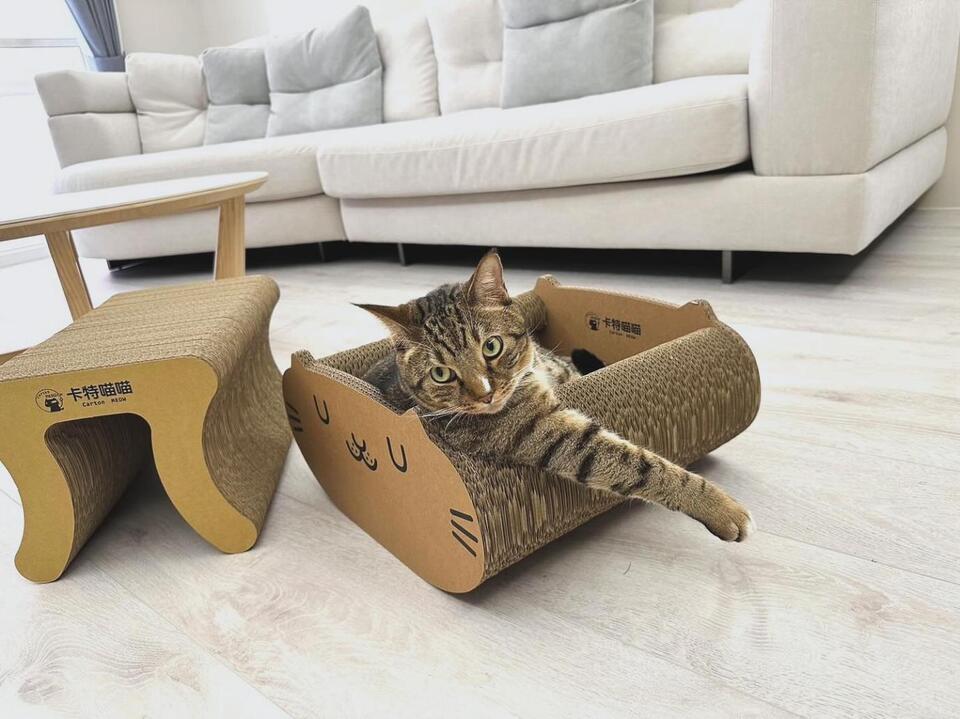 類似的故事,其實也不只發生在海外。許多台灣本地的飼主長年回購,有人家裡只有兩隻貓,卻已累積添購超過十幾款不同造型的抓板,幾乎成了家中每個角落的常駐擺設。