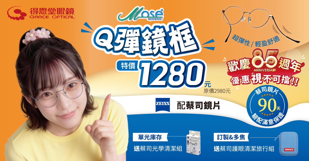 得恩堂85週年慶最新活動登場,除了推出Q彈好戴又耐用的MOSE超彈性鏡框,以優惠價回饋顧客,也特別結合德國百年光學領導品牌蔡司鏡片,2026/6/30前至全台得恩堂門市選配蔡司鏡片即享有長達3個月共90天的驗配滿意保證,讓配鏡更安心!再加贈『蔡司』專業護眼好禮包!讓雙眼在日常生活中獲得更好的呵護。另外還有Cool-Sun磁吸兩用偏光眼鏡,既是光學眼鏡,只要套上前掛片立即變身太陽眼鏡,一鏡兩用超方便,室內室外皆好用!優惠價只要$1980,時尚+防護,聰明消費一定要趁優惠入手,千萬別錯過!