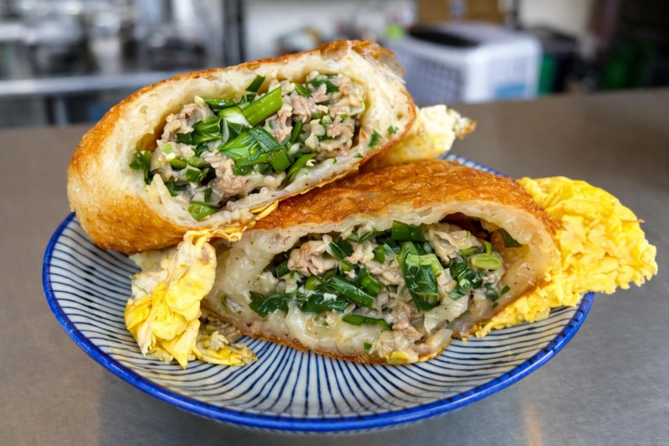 婆婆餡餅每日手工揉製麵糰,選用厚實麵皮下鍋慢煎,讓外皮呈現金黃酥香的口感,即使放涼也不易變硬。豬肉口味(0元)特選大孔絞肉,保留紮實肉塊感;韭菜豬肉(50元)則選用當日新鮮、清脆的韭菜,入口香氣與口感層次豐富,成為不少熟客固定回購的楊梅人氣餡餅口味。