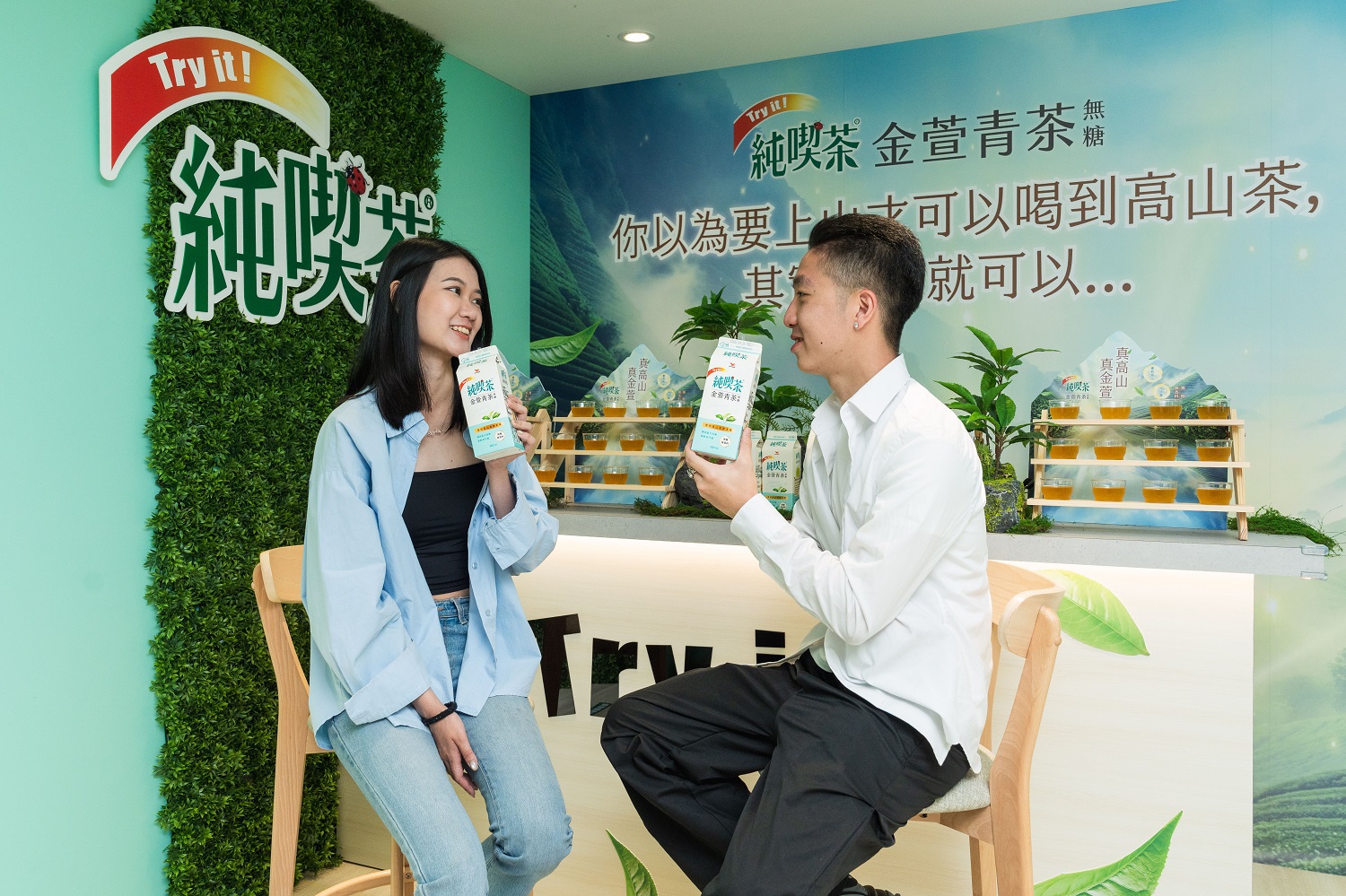 本次純喫茶推出全新新品「金萱青茶」,主打「城市裡的高山茶」,選用來自海拔1000公尺以上的真高山、真金萱,從源頭就確保茶葉擁有細緻清香與自然回甘。為了讓這份高山風味不被流失,更透過專利焙火與冷研磨技術,將茶香完整鎖住,讓每一口都能呈現出層次分明且乾淨的茶感。除此之外,純喫茶更於大稻埕特意打造出「巨型高山」並結合五感體驗與VR科技的沉浸式場域,讓民眾在城市之中,不用上山,也能一口喝到來自高山的金萱青茶。活動現場最吸睛的是一座矗立於河岸的「城市高山裝置」,將高山意象融入城市景觀,吸引民眾駐足拍照打卡。走進體驗空間後,從視覺、聲音到氣味,層層堆疊出高山茶園氛圍,引領消費者一步步走進高山。